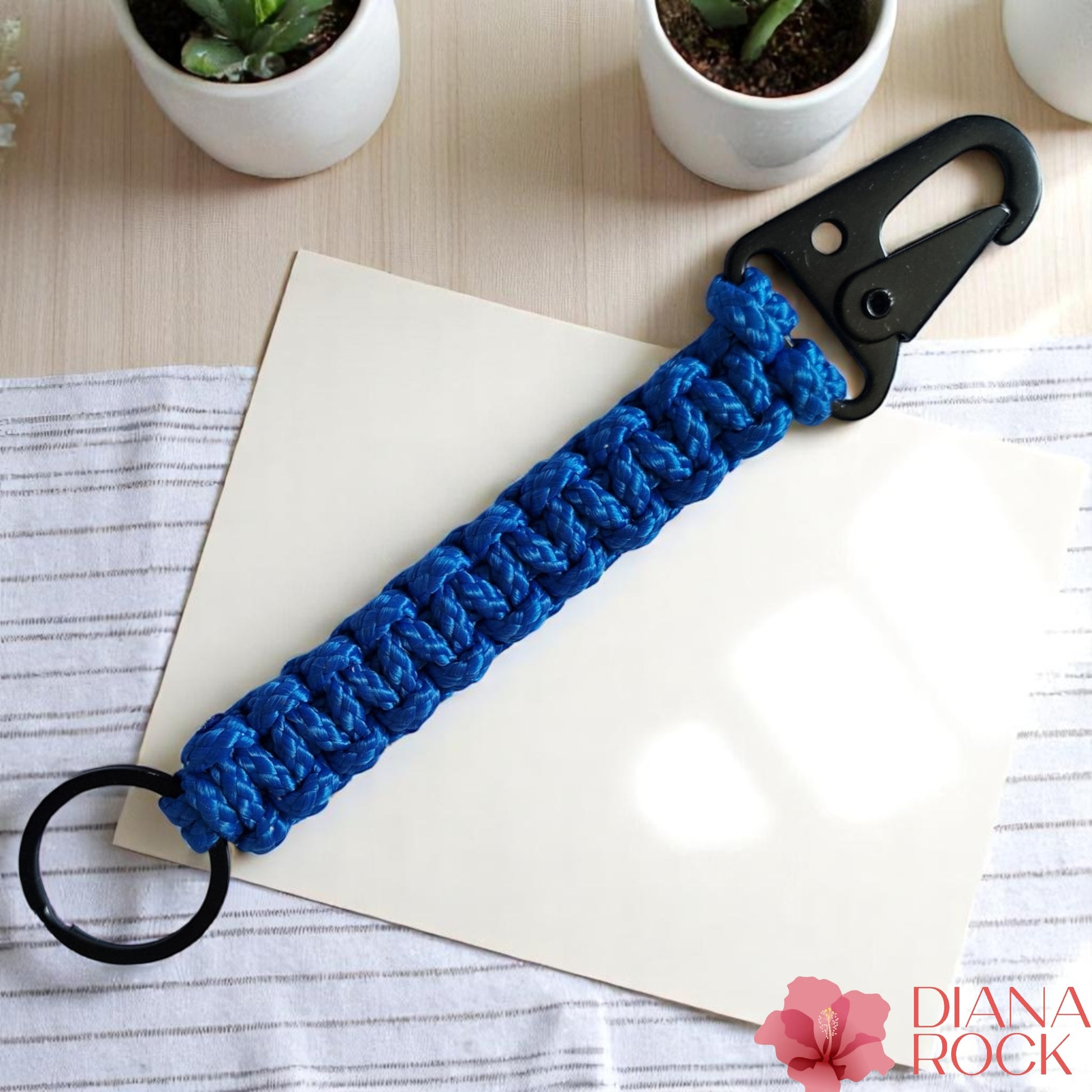 Ce porte-clé est un accessoire pratique qui est utilisé pour rassembler et organiser ses clés. Il est fabriqué à partir de corde de parachute "paracorde", dont les 2 boucles sont en acier.