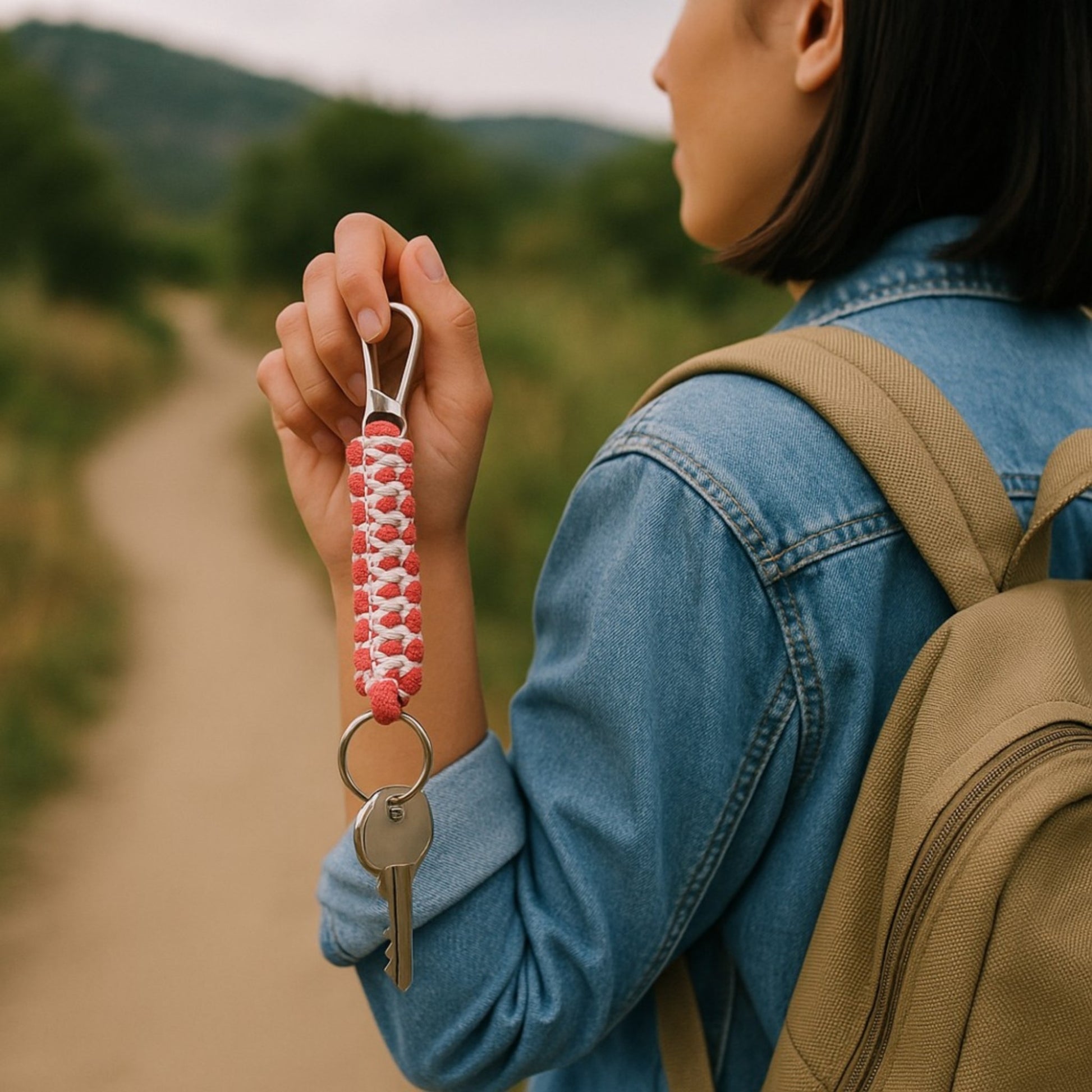 Ce porte-clé est un accessoire pratique qui est utilisé pour rassembler et organiser ses clés. Il est fabriqué à partir de corde de parachute "paracorde", dont les 2 boucles sont en acier.