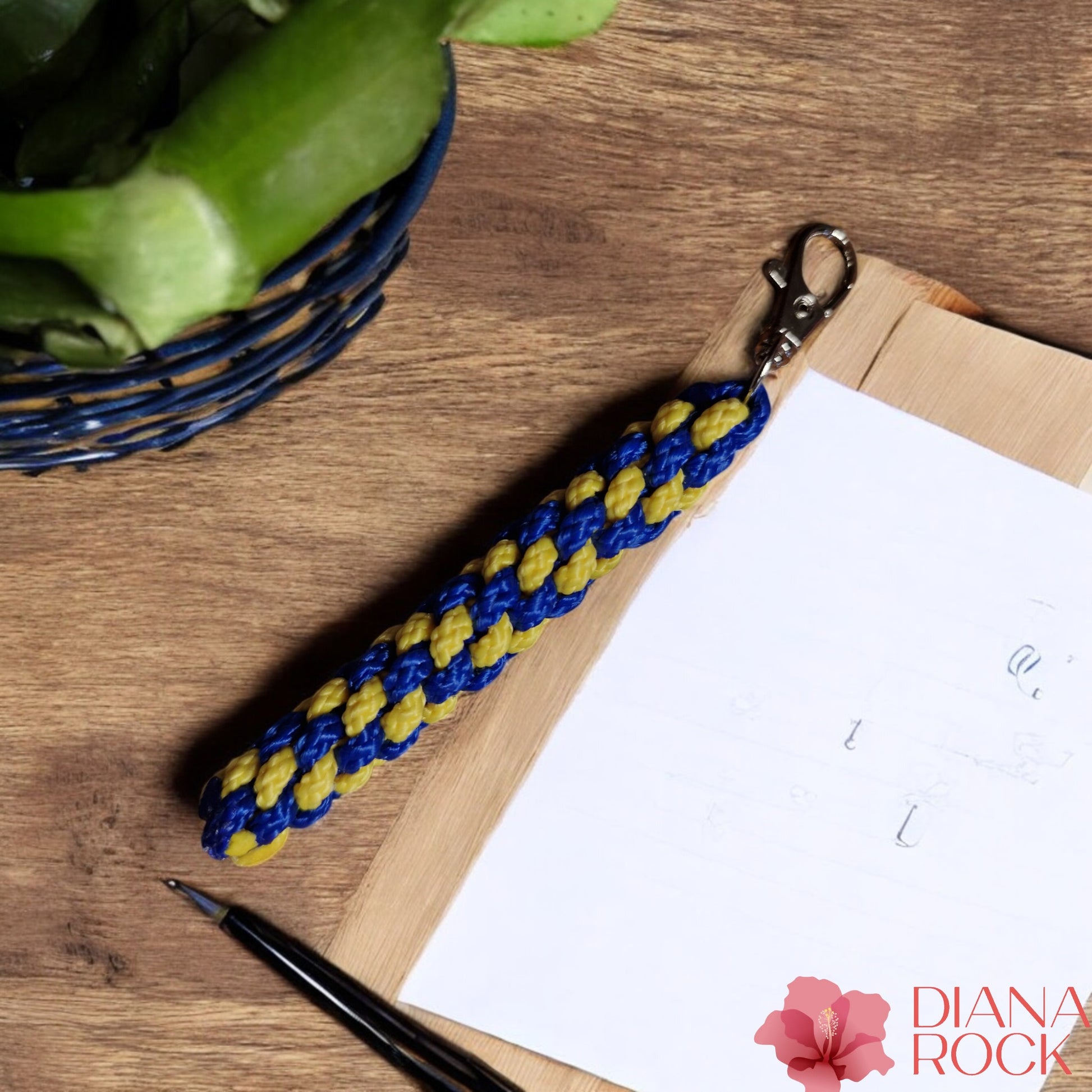 Ce porte-clés est au design Bi-couleur Bleu foncé et Jaune, dont ces couleurs chatoyantes sont en fait tres classique.